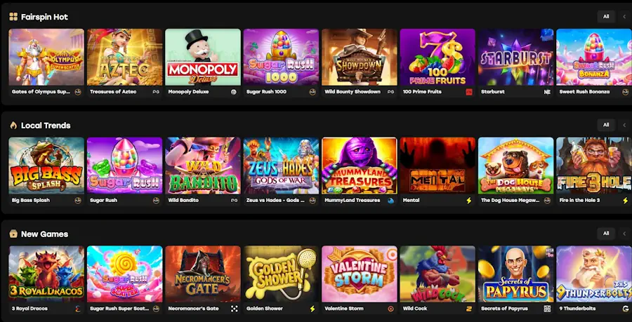 What games are available at Fairspin?